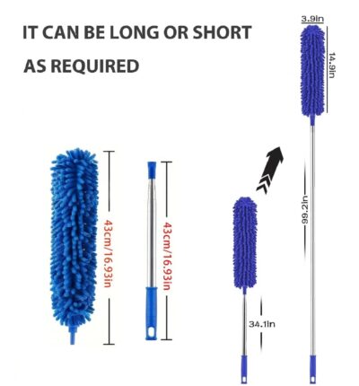 The 100 Inch Long Handle Microfiber Chenille Duster is a powerful and versatile cleaning tool built for high-reach dusting and cobweb removal in your home or workspace. Featuring an extra-long, bendable handle and a soft chenille microfiber head, this duster easily extends up to 100 inches so you can clean ceiling fans, high roofs, cobwebs, blinds, furniture, and hard-to-reach corners without ladders or stools. The anti-scratch microfiber chenille strands attract and hold dust, dirt, and spider webs effectively while being gentle on delicate surfaces. Washable and reusable, the microfiber head offers long-lasting performance and helps reduce waste. Lightweight yet sturdy, this cobweb stick makes deep-cleaning tasks simpler, safer, and more efficient — perfect for everyday home maintenance.