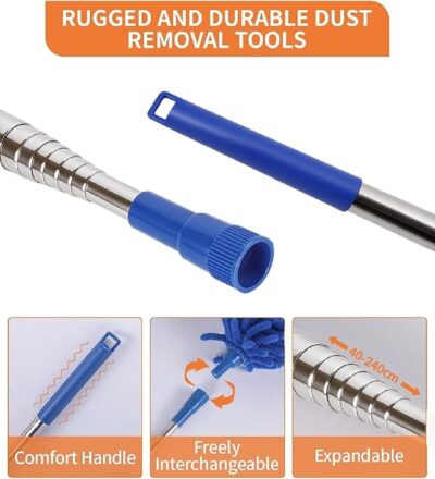 Washable and reusable, the microfiber head offers long-lasting performance and helps reduce waste. Lightweight yet sturdy, this cobweb stick makes deep-cleaning tasks simpler, safer, and more efficient — perfect for everyday home maintenance.