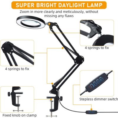 Crafted from high-quality, durable materials, this magnifier lamp ensures long-lasting performance for both home and professional use. Simple to install and easy to operate, it provides hands-free clarity and comfort for precision tasks of all kinds.