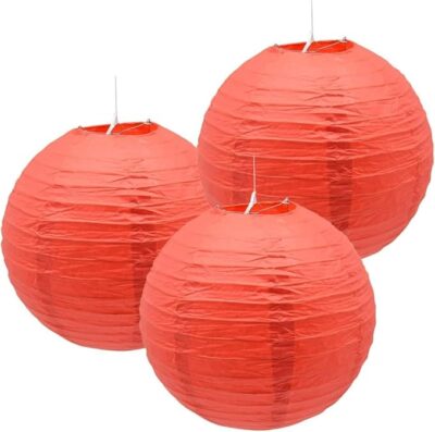 12 INCH, 3 Pieces RED Chinese Japanese Paper Lanterns (RED, 12INCH), 3 pcs