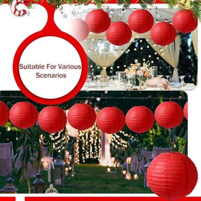 These 12-inch red Chinese/Japanese paper lanterns come as a set of 3, offering a vibrant and traditional decorative touch ideal for festivals, parties, weddings, cultural events, and home décor. Made from high-quality, lightweight paper with a sturdy inner metal frame, each lantern pops open easily and maintains its round shape beautifully. The rich red color symbolizes good luck, happiness, and celebration, making these lanterns perfect for themed events, photo backdrops, garden parties, or festive indoor displays. Simple to hang and reusable with proper care, this set of three lanterns adds warmth, charm, and an elegant Asian-inspired ambiance to any space.