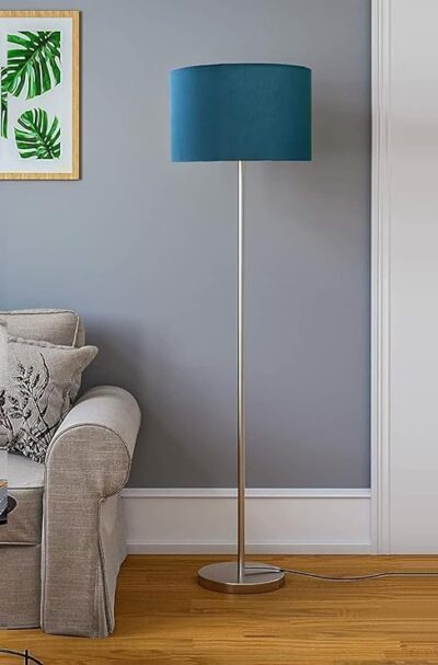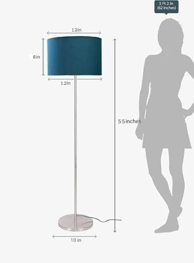 Sleek modern stainless steel floor lamp with a 12-inch blue taper shade. Adds elegance and style to your interiors while providing soft, ambient lighting — ideal for living rooms, bedrooms, and office corners.