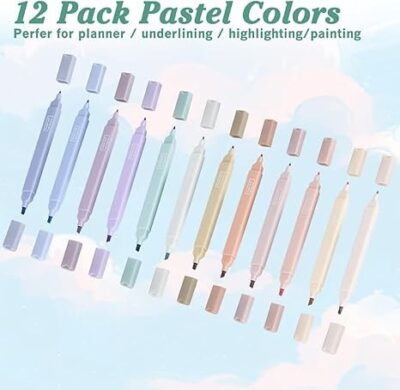 12Pcs Aesthetic Cute Highlighters with pastel colors designed for journals, Bible notes and school work. Dual-tip, no-bleed markers perfect for kids, students and creative DIY projects.