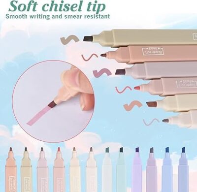 These 12Pcs Aesthetic Cute Highlighters bring soft pastel shades that make journaling, Bible study and school notes visually pleasing without causing ink bleed. Each pen features a dual-tip design offering both fine and broad highlighting for versatile use in notebooks, planners and art projects. The smooth ink flow ensures clean strokes, making them great for children and adults who love creative writing. Their compact design fits easily into pencil cases and school bags for everyday use. Ideal for office work, DIY crafts and neat project labeling, these highlighters add charm to any page. They are safe for kids and an excellent choice as birthday return gifts or classroom rewards. Enjoy a fun and stylish writing experience with colors that brighten learning and creativity.