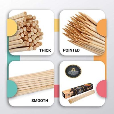 Crafted from natural bamboo, they’re sturdy enough for meats, veggies, fruits, and appetizers, while the pointed tips make threading ingredients a breeze. The slender, yet durable 3 mm diameter ensures flexibility without bending.