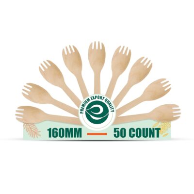 160mm, 50 Pack Disposable Sporks | Wooden Dining Flatware | Ideal for Kids Birthday, Wedding & Party