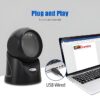 Its hands-free, plug-and-play desktop design allows barcodes to be scanned simply by presenting the item, without needing to pick up or trigger the device, speeding up checkout and inventory workflows.
