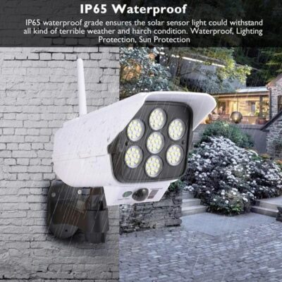 This Outdoor Solar LED Light features 77 LEDs with a PIR motion sensor for secure and efficient lighting around decks, patios, and entrances. Its IP65 waterproof design ensures durable performance in all weather conditions.