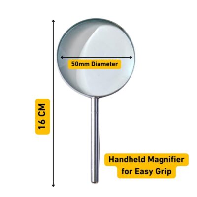 Built with a durable stainless steel handle and reinforced lens edges, this magnifier is designed for long-lasting use and daily reliability. Lightweight and comfortable to hold, it’s perfect for home, workshops, labs, travel, or any task requiring precision. Whether for reading, repairing, sewing, or close-up inspections, this portable magnifying glass is a must-have tool for clear, easy viewing.