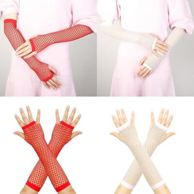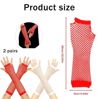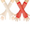 2 Pairs Black Gloves for Women, Net Glove for Women Lace Gloves, Elegant Fingerless Gloves for Wedding, Cosplay and Fashion, Made of Nylon, Red and White