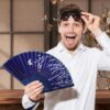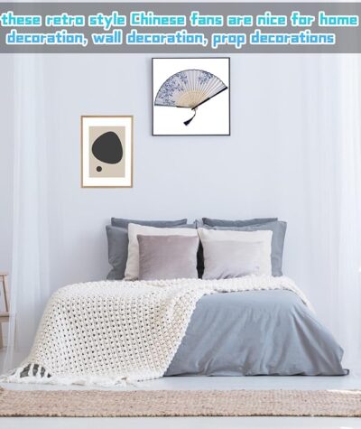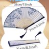 2 Pcs Hand Fan Manual, Japanese Fan, Chinese Fan for Hand Paper Fans for Decoration for Dancing Cosplay Wedding Party Props Decoration, White and Blue, 10 cm