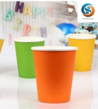 These 200 ml Multicolor Disposable Paper Cups come in a convenient pack of 100, designed to add a vibrant touch to any occasion. Made from high-quality, food-grade paper, they are safe for serving tea, coffee, juice, water, and other beverages. The bright rainbow colors make them perfect for weddings, parties, picnics, and travel, instantly elevating the mood with their cheerful look. Lightweight yet sturdy, these cups are easy to carry, use, and dispose of, ensuring a hygienic and hassle-free serving experience wherever you are.