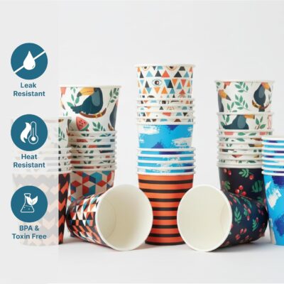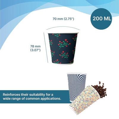 Disposable Paper Cups (200 ml, Pack of 50) are eco-friendly, multicolor drinking cups designed for convenient and hygienic beverage serving. Made from food-grade paper, these sturdy use-and-throw cups are ideal for tea, coffee, juice, and water. Perfect for weddings, parties, picnics, travel, offices, and gatherings, they offer comfortable handling and reliable performance without leakage. Lightweight and easy to dispose of, this pack of 50 paper cups provides a practical and colorful solution for everyday and event-based beverage needs.