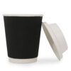 [250 ml, 50 Count, 8oz, Black Disposable Premium Double Wall Ripple Paper Cup with Bagasse Lid | Ecofriendly Glasses for Party, Cafes | Ideal for Tea, Coffee, Soft Drinks | GSM -485
