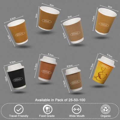 Be the first to review “[250 ml, 50 Count, 8oz, Black Disposable Premium Double Wall Ripple Paper Cup with Bagasse Lid | Ecofriendly Glasses for Party, Cafes | Ideal for Tea, Coffee, Soft Drinks | GSM -485”