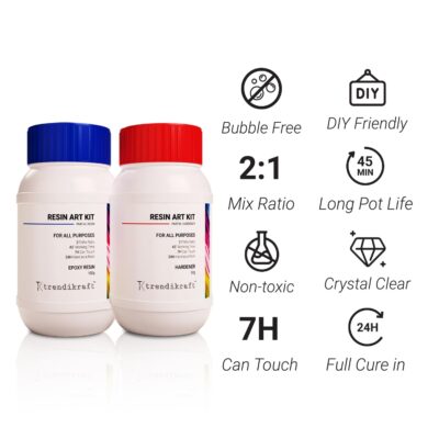 This DIY resin art kit provides everything needed to make three personalised coasters using clear epoxy resin and a variety of decorative materials. It includes silicone moulds, dried flowers, colour pigments, flakes and glitters that allow users to experiment with unique designs. The 150g resin and hardener set uses a 2:1 ratio, ensuring reliable curing and smooth, glossy results. Its materials work well together to create colourful, textured and visually appealing coaster art suitable for beginners. The resin self-levels to minimise bubbles and imperfections, delivering a clean finish to each piece. This compact kit offers a fun and creative crafting experience for home décor, gifting or hobby use. With multiple decorative options, it encourages artistic expression while keeping the process simple and enjoyable.