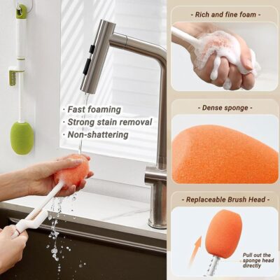 Measuring 33 cm, these brushes are ideal for deep cleaning narrow-neck bottles and wide containers alike. Available in random colors, this set is perfect for everyday kitchen use, keeping your bottles and cups hygienic and ready for use.
