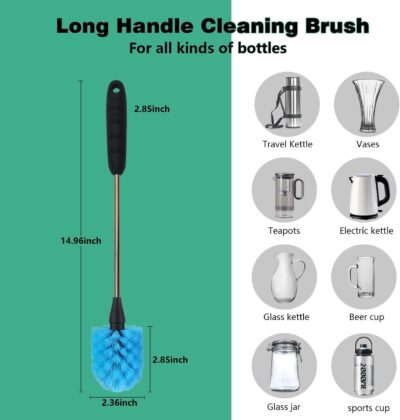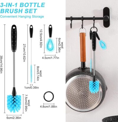 The 3Pcs Bottle Cleaner Brush Set is a complete cleaning solution designed for all types of bottles and drinkware. Each brush features a 15-inch long handle that easily reaches deep and narrow spaces, making it perfect for cleaning baby bottles, tumblers, straws, coffee mugs, sports bottles, flasks, and thermos lids. The set includes brushes of different sizes and shapes to meet various cleaning needs, ensuring every corner and curve is spotless. Made with durable, flexible bristles, these brushes effectively remove residue and stains without scratching surfaces. Ergonomically designed handles provide a comfortable grip for easy, efficient washing. Ideal for home, kitchen, and travel use, this set keeps your drinkware clean, fresh, and ready for use every day.