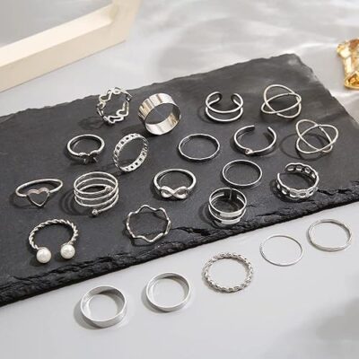 The 44 Pcs Combo Set Gold and Silver Plated Rings for Women and Girls is a fashionable assortment designed for endless styling possibilities. Featuring a mix of gold and silver plated finishes, the set includes an array of designs from minimalist bands to intricate patterns. Each ring is crafted with attention to detail, offering a comfortable fit and lightweight wear for daily use. The variety allows for creative combinations, whether you prefer stacking multiple rings for a bold look or wearing a single piece for subtle elegance. Suitable for both casual and festive occasions, these rings adapt effortlessly to different outfits and moods. The high-quality plating helps maintain their shine and finish over time. Their adjustable and assorted sizes make them suitable for various fingers and styling preferences. This set also makes a thoughtful gift for birthdays, anniversaries, or fashion lovers. Offering style, value, and variety, it’s a must-have addition to any accessory collection.