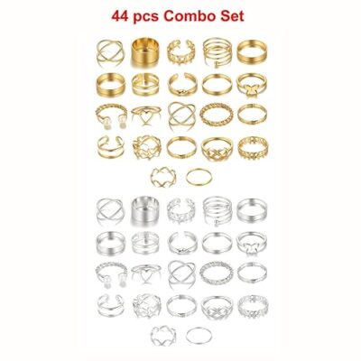 The 44 Pcs Combo Set of Gold and Silver Plated Rings offers a variety of stylish designs for women and girls. Perfect for mixing and matching, it adds versatility to any jewelry collection.