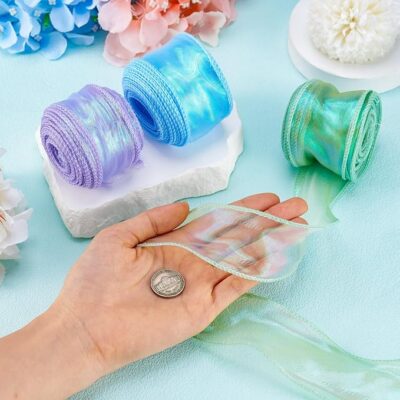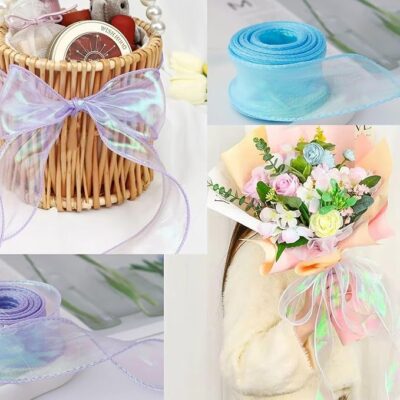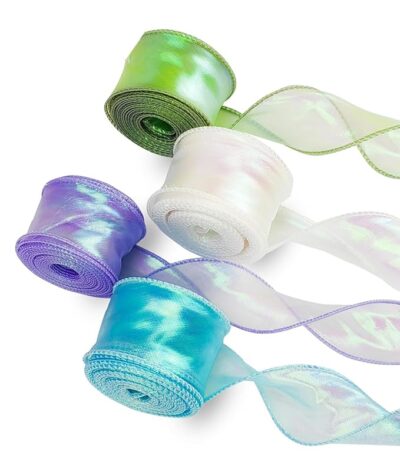 4Pcs Ribbon Roll, Organza Ribbon for Gift Wrapping, Purple Blue White Green Organza Fabric Material for Party Decorations DIY Crafts and Bouquet Gift Wrapping