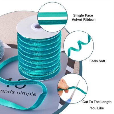 50 Yards Dark Cyan Velvet Ribbon Single Face Soft Ribbons 3/8 inch with Spool for DIY Sewing Gift Wrapping Home Party Wedding Decoration Jewelry Crafts Making