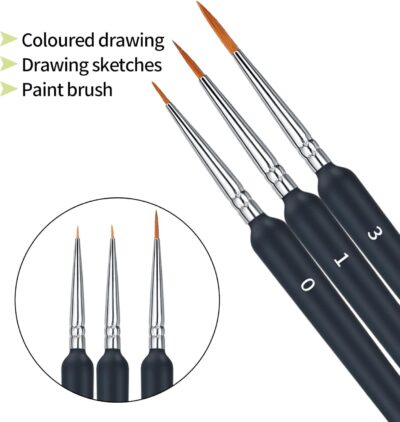 The brushes feature ergonomic wooden handles that offer a comfortable, non-slip grip, reducing hand fatigue during long painting sessions. Each fine tip provides exceptional accuracy, making the set ideal for outlining, highlights, intricate designs, and micro detailing.