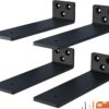 Durable 8-inch floating shelf brackets made from thick steel with a sleek black powder-coated finish. Each pair supports up to 100 lbs — perfect for kitchen, living room, or nursery shelving.