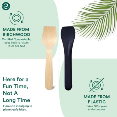 Ideal for kids’ birthdays, weddings, parties, and other events, these wooden dining spoons not only add a rustic charm to your table setting but also provide a hygienic, single-use solution for serving treats with ease.