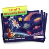 This A4 drawing book pack includes 34 white unruled pages per book with a soft cover, ideal for sketching, colouring, and painting. Designed for kids, students, and artists, it comes in a convenient set of three.