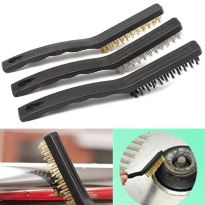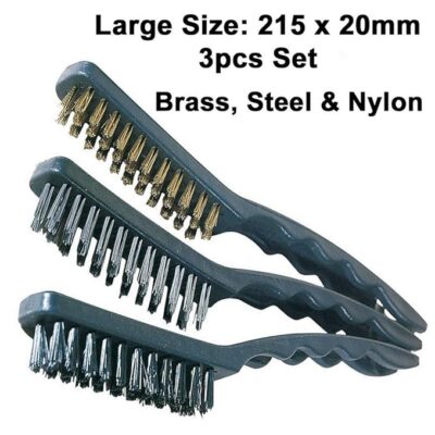 AASONS Wire Brush Assorted Set of 3 is a versatile and heavy-duty household cleaning solution designed for effective cleaning of tough and hard-to-reach areas. This set includes three brushes with stainless steel, brass, and nylon bristles, allowing you to choose the right level of scrubbing for different surfaces. The stainless-steel brush tackles stubborn grime, rust, and burnt residues, the brass brush offers medium-strength cleaning for sensitive surfaces, and the nylon brush is ideal for gentle cleaning without scratching. Each brush is fitted with a strong PVC handle for a comfortable grip and features an angled head that helps reach narrow corners, crevices, stove burners, tiles, taps, and edges with ease. Durable and easy to use, this brush set is perfect for kitchen, bathroom, and general household cleaning needs.