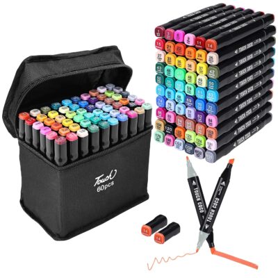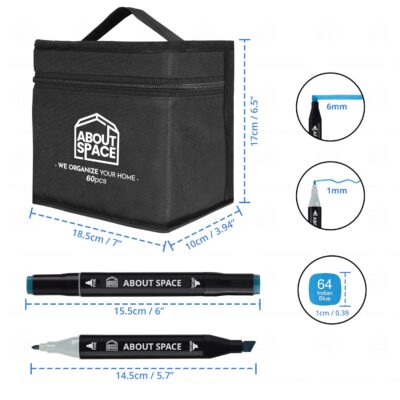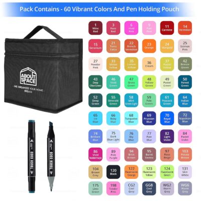 The ABOUT SPACE Dual Tip Art Markers set is a versatile 60-color kit perfect for kids, adults, and beginners who love painting, sketching, calligraphy, or coloring. Each marker features twin heads—a fine tip for detailed work and a broad tip for bold strokes—allowing maximum creativity and precision. The markers are odorless, non-toxic, and permanent, making them safe and reliable for long-term use. Packed in a convenient carrying case, this assorted color set is ideal for home, school, or travel projects, offering an all-in-one solution for artistic expression and fun.