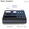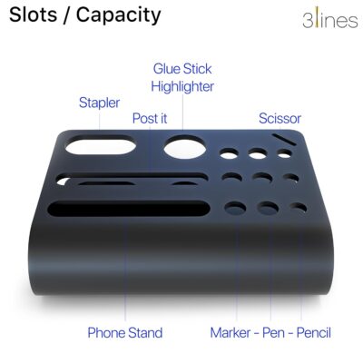 This Acrylic Tiny Twist Pen and Pencil Storage Organizer is designed with multiple individual compartments to neatly hold pens, pencils, markers, erasers, and other small stationery essentials. Its built-in phone stand provides a convenient slot for holding your device upright while you work or study. Made from durable acrylic, it offers strong structure, clarity, and long-lasting use while adding a sleek modern touch. The compact black design fits effortlessly on office desks, study tables, or bedside setups without taking up much space. Its smooth edges and sturdy build ensure easy daily handling and reliable support for all items. Perfect for home, office, or school use, it keeps your essentials organized and easily accessible. This mini desk organizer combines practicality and style to enhance workspace efficiency and visual appeal.
