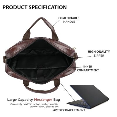 The ADISA Laptop Messenger Office Bag Briefcase (LB6052) is a sleek and functional work-ready bag designed to carry your laptop and daily essentials with ease. Made from durable PU/synthetic leather, it’s built to withstand everyday office, college, or travel use while maintaining a professional look. The bag includes a padded main compartment that fits laptops up to approximately 15.6 inches, along with additional pockets and space for accessories like chargers, documents, and small gadgets — helping you stay organized on the go. It also features dual handles and a height-adjustable shoulder strap for comfortable carrying options, and an expandable width design to accommodate extra items when needed. With its practical layout and reliable build, this messenger briefcase offers a blend of style, utility, and everyday convenience for men and women who need a dependable office-ready laptop bag.