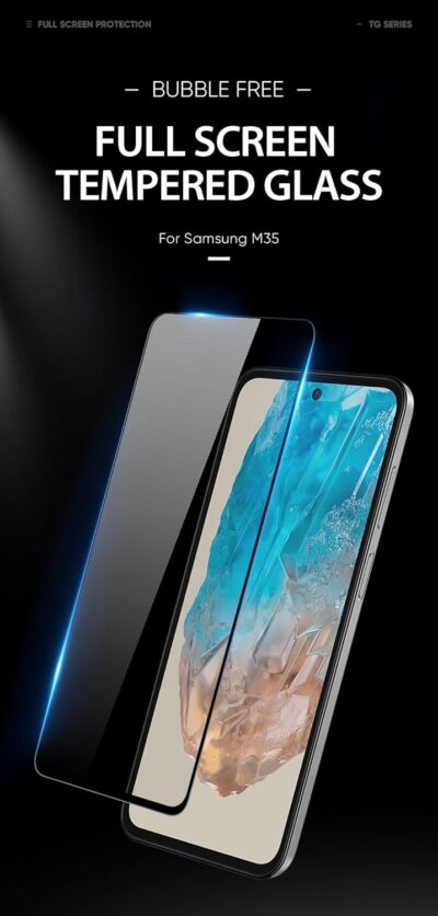 The Advanced HD+ Tempered Glass Screen Protector is designed for Samsung Galaxy M35, A35, and A55 5G, offering edge-to-edge coverage and easy installation. It ensures high clarity, scratch resistance, and durable screen protection.