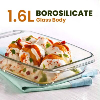 AGARO Elite Borosilicate Glass Baking Tray for Kitchen, 1600 ml, Baking Dish, Serving Bowl, Oven & Microwave, Dishwasher and Freezer safe, Rectangle, Transparent, Glass Bowl Container