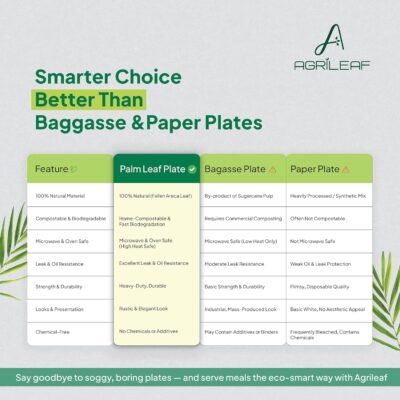 AGRILEAF palm leaf plates provide a hygienic, use-and-throw dining solution while supporting a sustainable and environmentally responsible lifestyle.