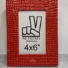 Its bold red finish adds a striking accent to your décor, making it a perfect choice for contemporary homes, offices, or studios. Designed to fit 4×6 inch photos, the frame includes both an easel stand for tabletop use and hooks for wall mounting, offering versatile display options.