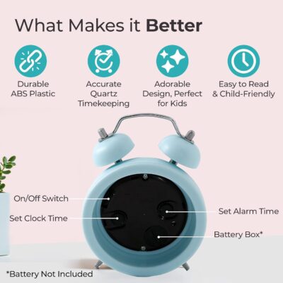 Alarm Clock (10cm) |Alarm Clock for Students |Alarm Clock for Bedroom |Loud Alarm Clock for Heavy Sleepers |Mini Alarm Clock for Kids| Twin Bell Table Clock for Study Table- Blue