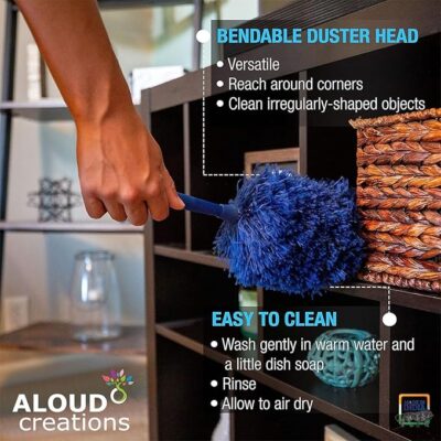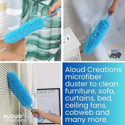 ALOUD CREATIONS 2Pc Microfiber Feather Duster Set is a versatile and washable cleaning solution designed to make dusting easier and more effective across your home, office, bedroom, and car. This set includes two microfiber feather dusters in red and blue, ideal for tackling dust on ceiling fans, curtains, shelves, corners, webs, and more. Made with soft, high-quality microfiber fibres, these dusters attract and trap dust and fine particles instead of just spreading them around, giving you a cleaner space with every swipe. The lightweight and flexible design lets you reach high and hard-to-access areas comfortably, while the washable heads make maintenance simple and reusable for long-lasting use.