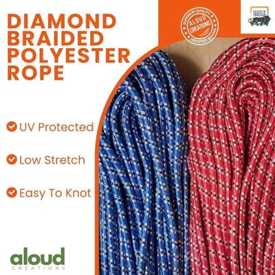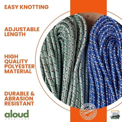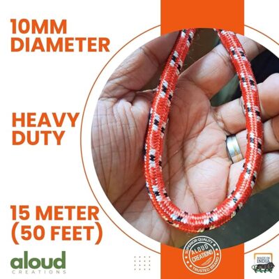ALOUD CREATIONS 8 mm Thick Diamond Braided Polyester Rope – 15 Meter (50 ft), Multicolour (Pack of 1) is a heavy-duty and versatile rope designed for a wide range of everyday and outdoor applications. Made from diamond-braided polyester, this rope offers excellent strength, flexibility, and resistance to abrasion, making it suitable for cloth drying, securing cargo, anchoring, tying downloads, sailing, and general utility use. The 8 mm thickness provides robust durability and load-bearing capacity, while the 15-meter (50 ft) length gives you ample reach for various tasks. Its multicolor design adds a vibrant, easy-to-spot look that’s practical in busy environments. Whether you’re using it as a laundry line, camping gear, or a heavy-duty support rope around the home or outdoors, this polyester rope combines strength, reliability, and flexibility in a single, dependable package.
