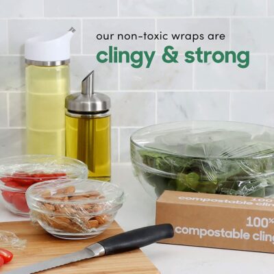 ALOUD CREATIONS Compostable Food Wrapping Cling Film (100 Meters, Pack of 1) is an eco-friendly and food-safe wrapping solution designed for hygienic food storage and packing. Made from compostable materials, this cling film helps keep fruits, vegetables, leftovers, and prepared meals fresh while reducing environmental impact. It offers reliable stretch and strong cling for secure wrapping and easy handling. Ideal for home kitchens, offices, restaurants, and catering services, this 100-metre roll is a sustainable and practical alternative to conventional plastic food wraps.