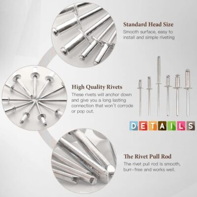 Crafted from durable aluminium and zinc-coated steel, these rivets and washers ensure strong joints, corrosion resistance, and reliable load distribution. Ideal for automotive work, sheet metal fabrication, construction, and general repairs, this all-in-one fastener kit keeps everything organized for easy use and portability.