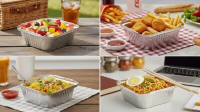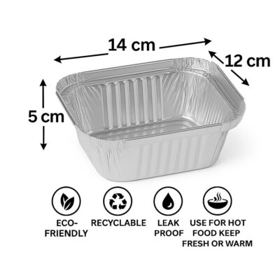 Aluminium Silver Foil Container – 450 ml (Pack of 25) is a practical and hygienic choice for food storage, baking, and takeaway needs. Crafted from premium food-grade aluminium foil, these disposable containers are leak-resistant, sturdy, and safe for both hot and cold foods, making them ideal for snacks, curries, desserts, bakery items, vegetables, and packed meals. Each container comes with a secure-fitting lid that helps retain freshness and prevents spills during transport, making them suitable for kitchens, party events, catering services, restaurants, and food delivery. Designed to be oven-safe and freezer-safe, these foil containers allow you to bake, reheat, store, or freeze food directly in the same tray. Lightweight yet durable, this pack of 25 silver foil containers ensures convenience, easy handling, and quick cleanup for everyday use and special occasions.