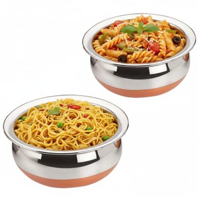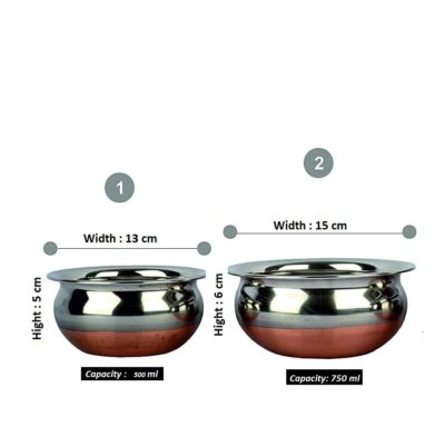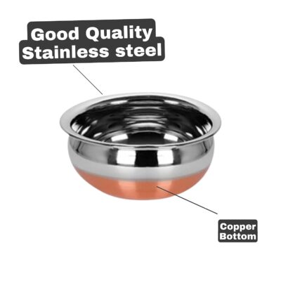 The copper bottom base provides superior heat conductivity, making the handi energy-efficient, allowing food to cook evenly and faster. Its mirror finish design adds elegance, making it suitable not just for cooking but also for serving directly at the table.