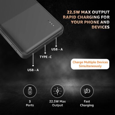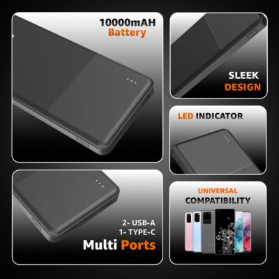 Its smart protection system guards against over-voltage, overheating, and short circuits, ensuring safe, reliable performance. The slim and travel-ready build fits easily into pockets or bags, while the LED indicator keeps you informed of remaining battery life.