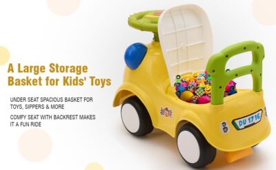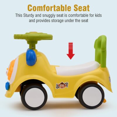 Built with high-density polyethylene (HDPE), the ride-on car is non-toxic, odourless, and durable, ensuring safe play every time. Its supportive backrest helps toddlers stay balanced while riding, and the under-seat storage provides space for keeping small toys or belongings.