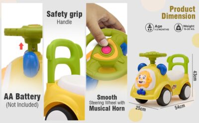 Certified by BIS, this product meets stringent Indian safety and quality standards. Proudly Made in India, the Jam & Honey Ride-on Car is an excellent choice for toddlers, and a thoughtful gift for birthdays or special occasions.