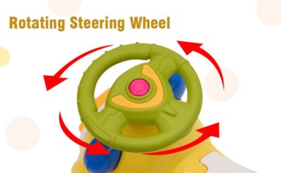 The interactive steering wheel adds to the fun while also helping children develop their motor skills and muscle strength as they push the car with their legs. This playful activity also promotes cognitive growth by encouraging imagination, distance awareness, and navigation skills.
