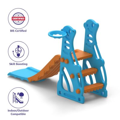 Crafted from high-quality, sturdy plastic, the slide ensures long-lasting durability, making it a reliable companion for active little ones. It has undergone 72 safety and performance tests per IS-9873 standards at an NABL-accredited and BIS-recognized lab, offering parents complete peace of mind.